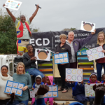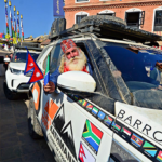 18 July 2018 – Centenary of Nelson Mandela’s birth: to celebrate Land Rover’s 70th anniversary year and in the spirit of ‘Africa & Beyond’, the transcontinental Cape Town to Kathmandu Expedition began with a colourful send-off at the Nobel Square on Cape Town’s V&A Waterfront, the filling of the symbolic expedition Zulu calabash with cold Atlantic seawater and the unveiling of the expedition’s new ‘Madiba100’ Scroll of Peace and Goodwill.  It promised to be another great challenge for the same two All New Discoverys and faithful Defender 130 that successfully reached Africa’s most easterly point in Somalia in 2017.