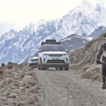 A few days later, a major expedition objective achieved – and a historic moment for the expedition Land Rovers – as our All New Discoverys became the first in the world to travel the famous Khyber Pass to the Afghanistan border and then, in freezing conditions, complete the treacherous 800-kilometre-long Karakoram Highway in northern Pakistan.  It’s not called the ‘highest paved road in the world’ for nothing as it twists and turns through the three greatest mountain ranges on Earth – the Himalayas, the Karakorams and the Hindu Kush – Shova Mike did much of it on his mountain bike. Wow!