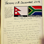 First stop was Chitwan National Park, home to a small but growing population of the critically endangered Asian One-Horned Rhinoceros.  What a heartwarming moment – handing over the Rhino Art messages against rhino poaching from children that we’d carried all the way from South Africa in the Land Rovers, and receiving reciprocal messages of solidarity from Nepalese children.  It’s the first time these two globally important rhino conservation countries have connected in such a profound way, through the voices of their children.